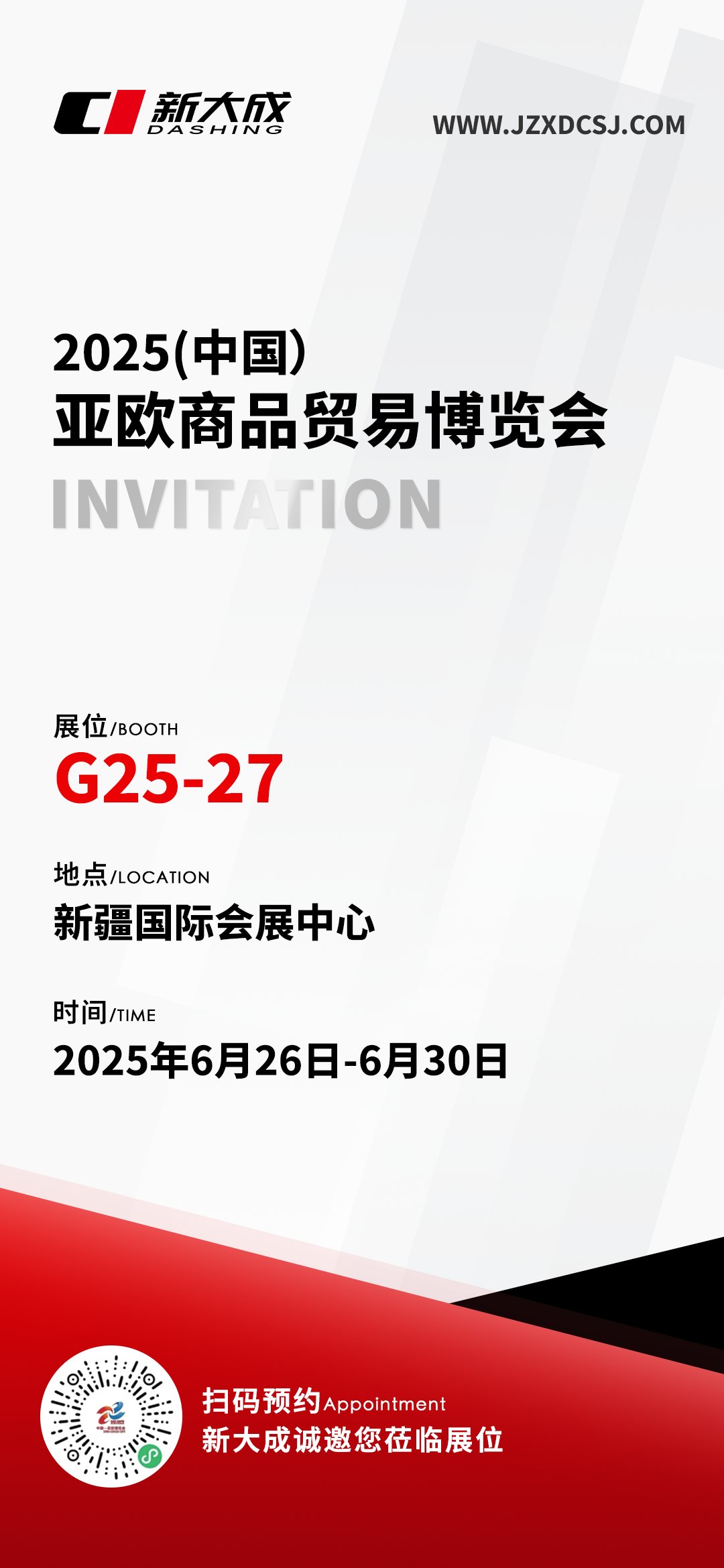 我們的展位位于 G25-27,展會時間為 2025年6月26日-6月30日。在這里,您不僅能近距離感受新大成的品牌魅力與產(chǎn)品實力,還能與來自不同地區(qū)的行業(yè)精英交流互動,拓展人脈資源,為企業(yè)發(fā)展注入新的活力。